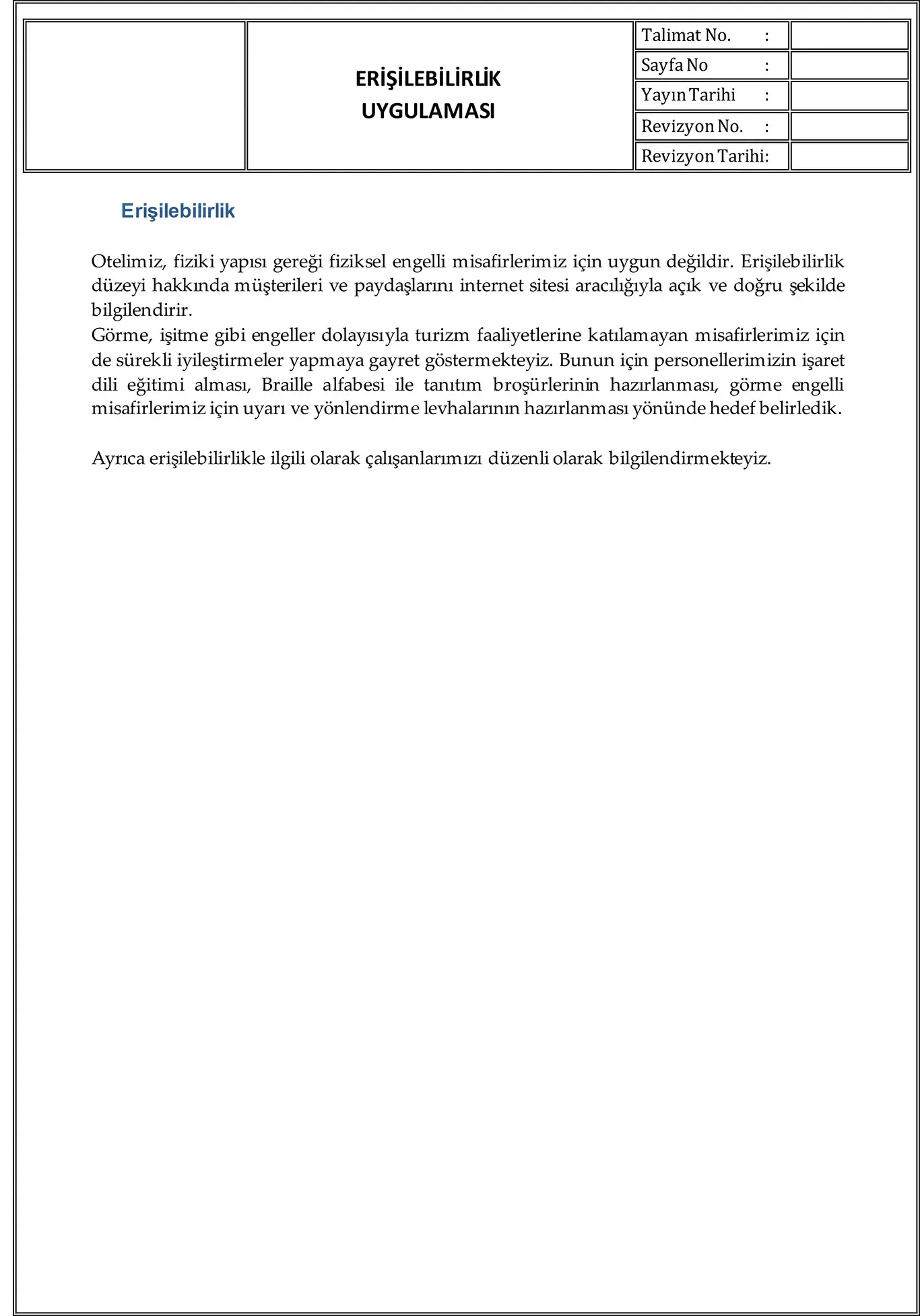However, we strive to make continuous improvements for our guests who cannot participate in tourism activities due to disabilities such as vision or hearing impairment. In this regard, we have set goals for our staff to receive sign language training, to prepare descriptive brochures in Braille alphabet, and to create warning and wayfinding signs for our visually impaired guests. Furthermore, we regularly inform our employees about accessibility.